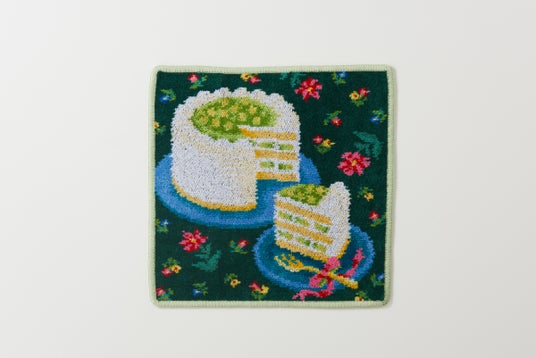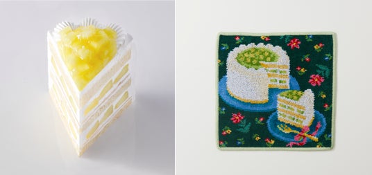 「ロイヤルグリーン」の気品高いハンカチは、『新エクストラスーパーメロンショートケーキ』とセットでご用意。みずみずしい静岡県産のマスクメロンは、1ピースに大きさ直径約18cmの3分の1を贅沢に使用しています。メロンの味わいを引き立たせるために、中にはライチの層を加えすっきりとした味わいを演出。さらに仕上げには葛をまとったメロンをトッピングした、まさに“最上級ショートケーキ”です。どちらのセットも、お好みに合わせてハンカチの縁どりカラーは選択可能。