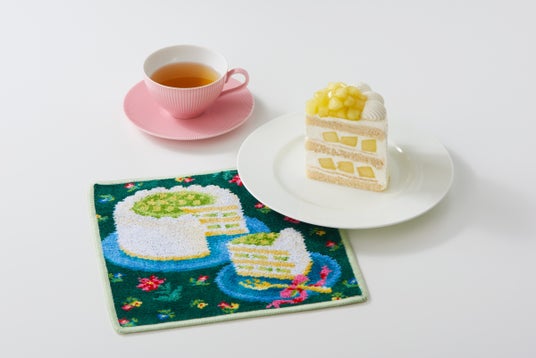 2つのセットは、コーヒーショップ「SATSUKI」にてイートイン利用も可能。スイーツが織りあげられた特別仕様のハンカチは、広々とした上質な空間でスイーツを満喫した時間の余韻をお家でも愉しむことが出来ます。