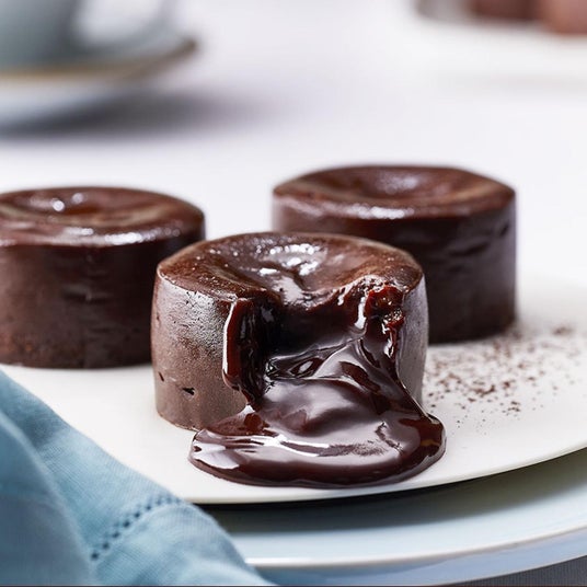 異なる2種のチョコレートを使用した「フォンダン・オ・ショコラ」は、濃厚でリッチな味わい。温めることで、とろりとしたチョコレートガナッシュが中から溢れだします。