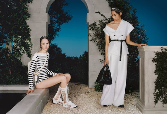 2025年春夏 コレクションで、マリア・グラツィア・キウリは、闘争的で力強いオーラを放つアマゾーンの姿を、動きのある身体に寄り添うようなシルエットで表現しました。力強さと繊細さ、大胆さと洗練さを併せ持つこのビジュアルは、素晴らしい夢のような郊外で、アーティストのサラ・ジョーンズが捉えました。自然とパリの魅惑的な対話が始まり、装飾は首都の庭園の独特なスタイルを反映し、空は夜明けと夕暮れを思わせるブルーのパレットで、その瞬間を現在に凍結させるかのように表現されました。シュルレアリスムを思わせるこれらのタブローは、クチュールと技巧が融合した大胆でモダンなルックを披露しています。洗練と機能性を兼ね備えたボディスーツは、アシンメトリーなカットアウトやストライプで装飾され、スポーツの言語を再解釈しています。この衝動は、“D.I.O.R”の文字を極限まで伸ばしたグラフィカルなラインをあしらったトラックスーツのボトムスにも見られます。たとえば、1948-1949年秋冬 コレクションで創設者クチュリエが考案した「アバンドン ドレス」のラインにインスパイアされたジャケットを、ボリュームとドレープが印象的なパンツに合わせたものです。身体性を讃えるこのような詩的な考察は、アクセサリーでも示されています。身体にフィットし自由で力強い魅力を放つ「D-ジャーニー」は、スモール、ミディアム、ラージサイズで展開されるしなやかなバッグで、比類なき実用性を誇るシグネチャーバケットもセレクションに加わります。伝統的なコードを遊び心で取り入れた巧妙なハイブリッドシューズ、「オプティカル-D」のトングサンダルやハイトップバージョンで発表された「ゲットディオール」スニーカーも登場します。どれも現代におけるアマゾーンのような、勝利に満ち、エレガントで、抗いがたいほどディオールらしい姿勢を明確にするものです。このコレクションは、全国のディオールブティックおよび、公式オンラインブティックにて順次ご覧いただけます。