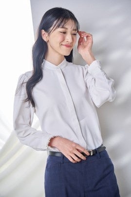 1枚着としても映えるデザイン性で、入学式だけでなく、従来のシャツタイプのブラウスよりも着用の幅が広がり、デイリーのスタイリングでも活躍するところもポイントの一つです。