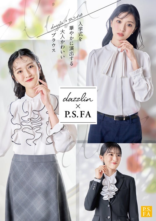 はるやま商事株式会社(本社:岡山県岡山市、代表取締役社長 中村 宏明)が展開するPerfect Suit FActory(以下、「P.S.FA」といいます。)から、MARK STYLER株式会社(本社:東京都渋谷区、代表取締役社長 秋山 正則)が手掛ける人気レディスアパレルブランドdazzlin(ダズリン)とコラボレーションし、2025年度新生活を迎えるフレッシャーズ世代を中心にスーツスタイリングに取り入れていただけ、デイリーのスタイリングでも活躍する華やか&大人可愛いデザインのブラウスを2025年1月15日(水)よりP.S.FA店舗およびP.S.FAオンラインショップにて販売開始いたします。
