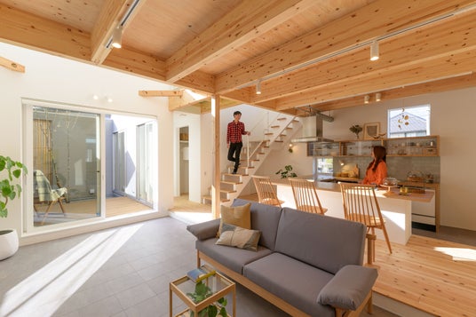 こちらの建物は外部からの視線を遮った中庭を中心に、カーテンをせずに、太陽の光や、風を感じながら、まるで自然の中にいるような暮らしが出来る建物です。