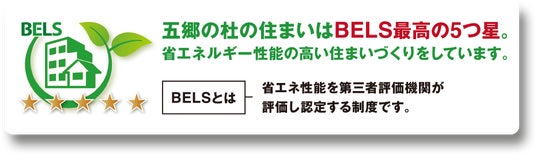 ※BELS(ベルス)は、建築物の省エネルギー性能を評価する制度で、第三者機関がエネルギー消費量を基に5段階で評価します。