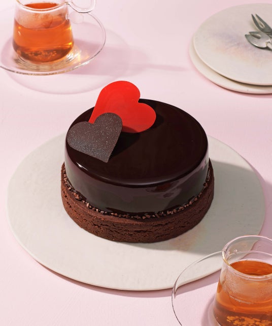 コクのあるショコラムースで甘酸っぱいフランボワーズジュレを包み、ショコラサブレに載せました。バレンタインのティーパーティーにおすすめのケーキです。3~4人で切り分けてお楽しみください。