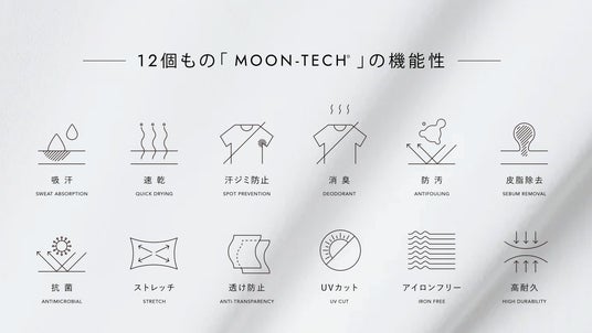 両商品には、汗ジミ防止・吸汗速乾・消臭・防汚・皮脂除去など12個もの高い機能を搭載した「過剰なほどの機能性」を持つ「MOON-TECH(R)」を使用。第一弾の「無敵のポケT」のテーマでもあった「夏の衣服の不快要素に徹底的に向き合う」という点を引き続き踏襲しています。どうしても半袖や短パンが苦手という方でも、酷暑の多い夏場で長袖長ズボンでありながら快適に過ごせるアイテムです。また、ダブルジップのオリジナルファスナー、綺麗に立つハイネックデザイン、パーカーフロントやパンツ裏のポケットをジップ付きポケットにするなどシンプルデザインながら、随所に存在感のあるこだわりのギミックを搭載しております。