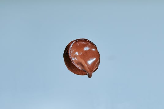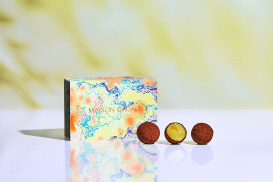 一粒でデザートになるほどの食体験。外側のチョコレートは少し力を入れただけで割れそうなほど繊細ながら、口の中でパリッと弾けた瞬間に、中から液状のチョコレートが溢れ出します。