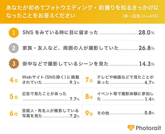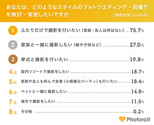 有効回答:2025年1月~2025年12月に結婚予定且つフォトウエディング・前撮りを実施予定の18~49歳の416名