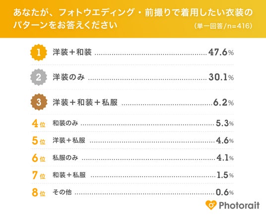 複数の衣装を組み合わせたパターンが選ばれていることより、多様なスタイルで思い出を残したいと考えていることがうかがえます。