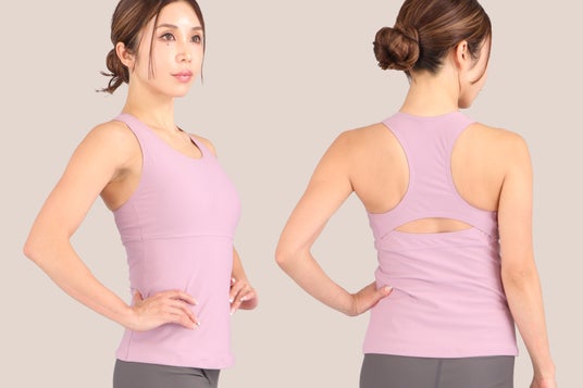 パッドが縫い付け式となっており、体の動きによってずれたり、よれたりしにくい仕様です。差し込み式のパッドのように洗ったり干したりするときにパッドがずれたり、紛失したりする心配がなく、お手入れもラクです。厚みとホールド感のあるパッドを採用し、綺麗なバストラインをキープできる配置に固定。また、背中側は肩甲骨が動かしやすいカットを採用し、アクティブな動きにも対応。オシャレなバックスタイルとなっています。