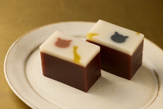 ◆チョコレート羊羹『まちねこ』は、銀座松屋様でのバレンタイン用催事の和菓子として2018年に誕生しました。和菓子をもっと身近に、幅広い年齢層に向けて知ってもらいたいと思い、和洋折衷のお菓子として誕生しました。チョコレートは、湿度や温度の関係で油脂が浮き上がり、チョコの表面が白く見えたり、斑点状のものができたりする特徴があります。この現象を抑えられるのが「寒天」でした。そこから、小豆とカカオは同じ豆同士。合わないはずはないと、小豆と合うさまざまな種類のチョコを検討し、年々試行錯誤・改良を重ねました。ビターとミルクの2種類のチョコを合わせたチョコレート羊羹が完成しました。