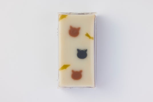 食べた後も、そのチョコ羊羹を食べた時もらった時の思いを残してもらえるよう、ネコのステッカーをつけています。パッケージもリニューアルし、楽しさを表現したデザインになっています。