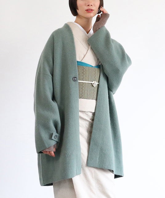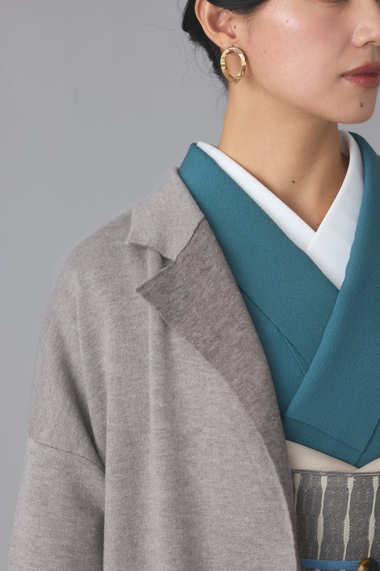 「ダブルフェイスニットテーラードコート」 着物のコートではあまり見かけない テーラードカラーのロングニットコート。軽いです。