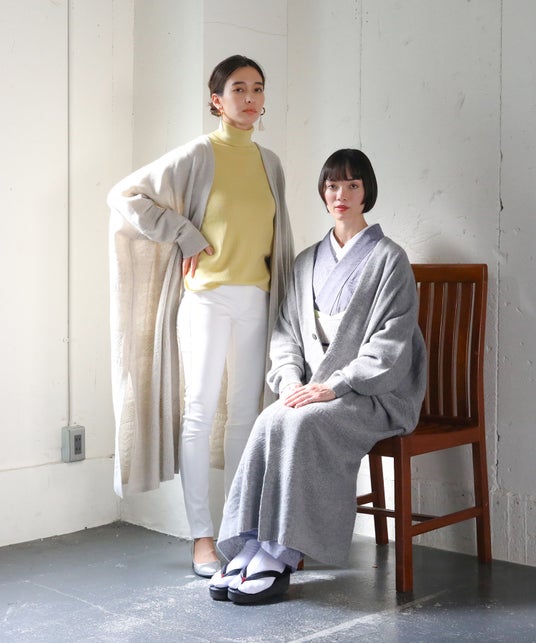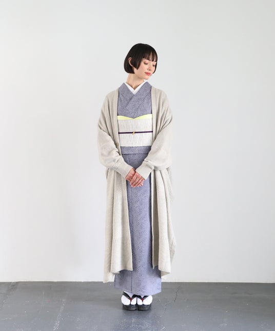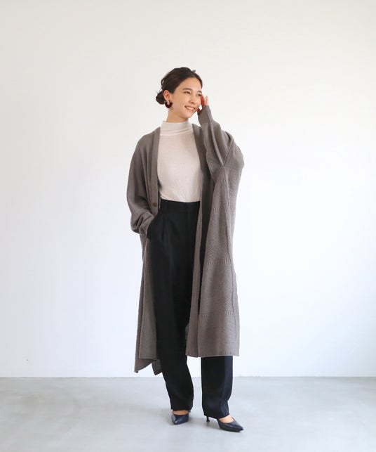 洋服でもお着物でもかっこよく着て頂けるロングカーディガン。両脇にスリットが深く入っていますので、歩くと裾が揺れとても軽やかです
