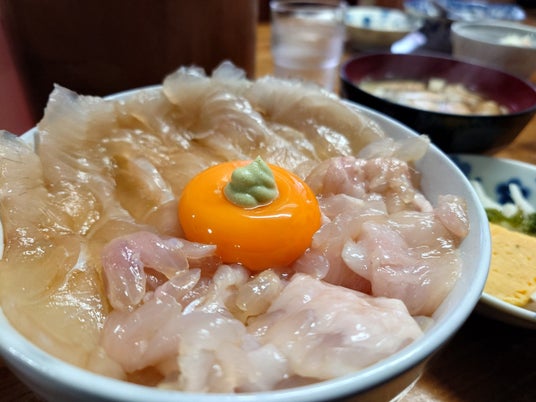 濃厚なヒラメの漬け丼や白子食べ比べ……獲れたて魚介のご当地グルメが漁師ごと出張してきてくれて、目の前で巨大な魚がさばかれるのを見ながら、日本酒と魚介のペアリングが楽しめるイベントです。