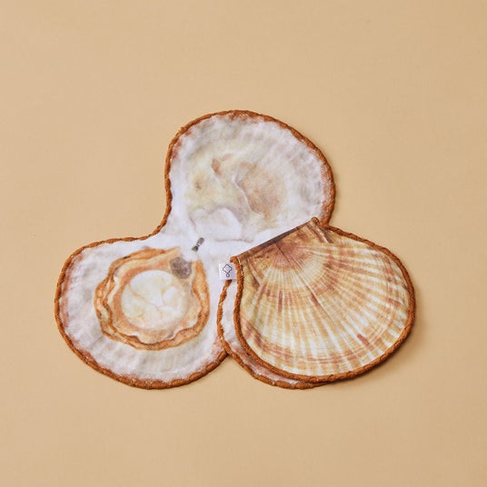 帆立が好きすぎて、許されるのなら四六時中持ち歩きたい……。そんな人におすすめしたい本物の帆立みたいなハンカチです。ちょうどリアル帆立サイズで、リアルな水彩イラストをプリントしダイカットハンカチは、表と裏でデザインが違うリバーシブル仕様です。二つ折りにして閉じると帆立の殻、パカっと開くと内側にはおいしそうな帆立の身が現れます。ハンカチを使うたびにおなかが鳴りそうです。