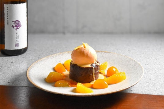 とろりと溶け出す香り豊かな濃厚チョコレートを楽しむフォンダンショコラに、柑橘、さらに新政酒造の貴醸酒「紫八咫(むらさきやた)」を贅沢に使ったアイス、もしくはほうじ茶アイスがお楽しみいただける、特別な大人スイーツが登場です。