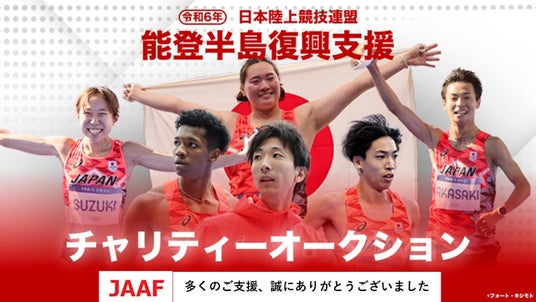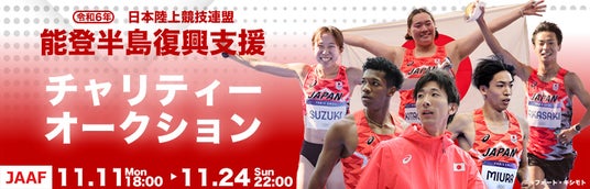日本陸上競技連盟は、バリュエンスジャパン株式会社と連携し、2024年11月11日~24日の期間「能登半島復興支援チャリティーオークション第二弾」を開催いたしました。632名のご参加・3,362件の入札件数と、多くの方々にご参加いただき、合計2,827,406円のオークション落札金額となりました。誠にありがとうございました。