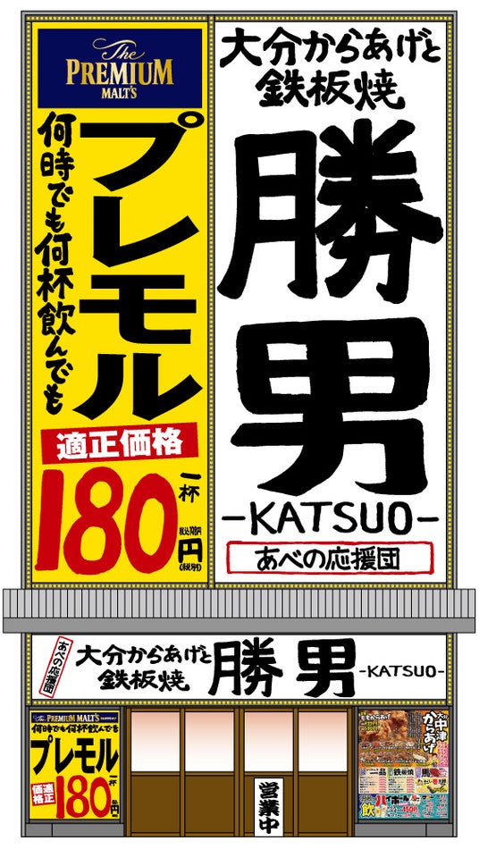 勝男といえば、もうみなさんご存じのとおり、お財布に優しくコスパ最強の居酒屋です。天王寺・阿部野エリアで営業している既存の勝男各店もこれまで多くのお客様にご利用頂いております。今回のあべの応援団オープンで街をさらに盛り上げていきたいと考えております。