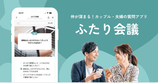 当社が開発したカップルTechアプリ「ふたり会議」は、カップルや夫婦が日常的に対話を深め、価値観を共有することで相互理解を促進するコミュニケーションツールです。家族観や結婚観が多様化する現代において、関係性悪化を防ぎ、パートナー同士がより良い関係を築くためのサポートを行っております。