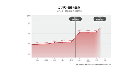 経済産業省が発表しているレギュラーガソリン1リットル当たりの全国平均小売価格※2の推移によると、2024年12月は、2023年9月以来約3か月ぶりに180円を超える高値となっており、2025年1月も引き続きガソリン価格の高騰が予測される中で、目的地へ向かいながらも、なるべく価格の安いガソリンスタンドで給油できるよう、開発いたしました。