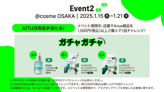 @cosme OSAKAにて韓国のスキンケアブランド「Anua(アヌア)」 のポップアップストアを2025年1月15日(水)~1月21日(火)の期間限定でオープンいたします。