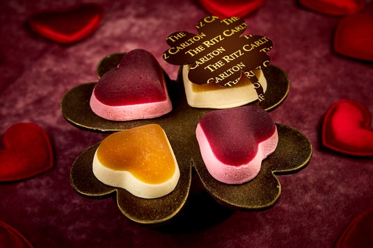 幸せを運ぶと言われる四つ葉のクローバーを模したダークチョコレートの上に、カラフルなハートのグミをトッピング。幸運が訪れるようにという願いを込めた、特別なギフトにおすすめです。