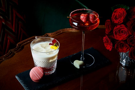 甘いバラの香りと苺の甘さが溶け合うカクテルと、ブランデーをベースにココナッツとヨーグルトでマニッシュな雰囲気と優しさを兼ね備えたカクテルをお作りします。優雅で思い出に残るバレンタインデーとホワイトデーをお過ごしください。