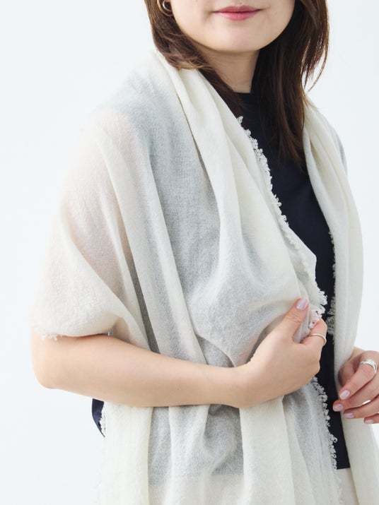 「軽くて、暖かくて中途半端な季節でもとても重宝しています。色も明るく、顔周りが明るくなります。冬場の差し色としても使いやすいです。」(K.M.様)