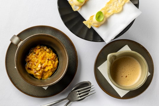 ウィークエンドブランチを華やかに彩るバラエティ豊かなメニューは、セルジオ・ハーマンの軌跡を辿る逸品の数々で構成されています。アントワープ本店でシグネチャーメニューとして人気を誇る、彼の故郷オランダ・ゼーラント地方の豊かな海の幸をふんだんに使用した前菜のセレクション「ル プリスティン プラトー」は、ブランチを華やかにスタートするハイライトメニューとして、東京店オリジナルのアレンジを加えてご用意いたします。両親が経営するムール貝レストランをミシュラン三つ星の名店に押し上げたセルジオならではの「ムール貝のエスカベッシュ」や、濃厚な甘みの牡丹海老とクリームクリュ、アボカドのまろやかなレイヤーを楽しむ「牡丹海老 クリームクリュ アボカド ライム」など、“ユニークで贅沢なシェアリングディッシュ”という彼の理念が体現されたメニューの数々をご堪能いただけます。