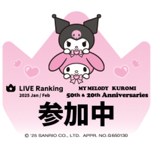 今回のLIVE Rankingは株式会社サンリオのキャラクターで、今年デビュー50周年の「マイメロディ」と20周年の「クロミ」とのコラボイベントで『マイメロディ50周年&クロミ20周年記念』の限定ギフト、いいねアイコン、LIVEステッカーが登場します。