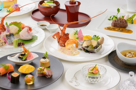 おふたりの華やかな宴に華を添えるお料理は、開業以来国内外の賓客をもてなしてきた鳥羽国際ホテルならではの伝統の味わいと新しいテイストを織り交ぜ、お料理一つ一つに想いを込めて、心を尽してご用意いたします。おふたりの華やかな宴に華を添えるお料理は、シェフがご要望をおうかがいしながら、おふたりの大切な思い出をカタチにした一品からスタートします。和洋折衷、和食、洋食の3種からお選びいただけます。