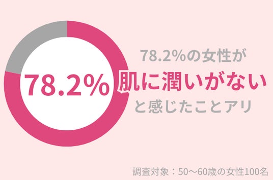 調査の結果、50代女性のうち、78.2%の方が「肌に潤いがない」と感じたことがあるようです。肌に潤いがないと、シワっぽく見えてしまいます。若々しく健康な印象のお肌を作るには、肌に潤いを与える保湿を行うことが重要です。