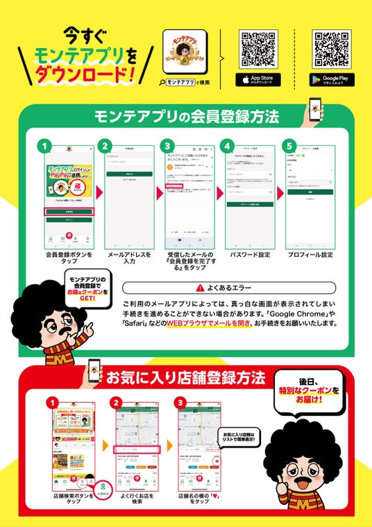 ■モンテアプリのダウンロードとお気に入り店舗登録について