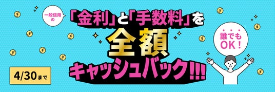 また、サービス取扱い開始を記念し2025年1月20日(月)より、「一般信用リリース記念!「金利」と「手数料」を“全額”キャッシュバックキャンペーン」を行います。