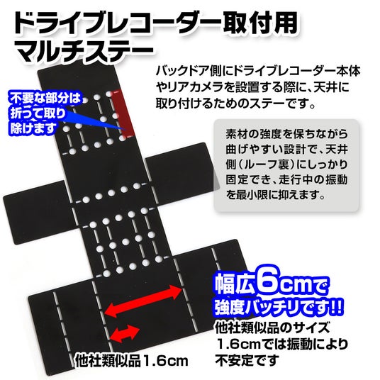 バックドア側にドライブレコーダー本体やリアカメラを設置する際に天井に取り付けるためのステーです。