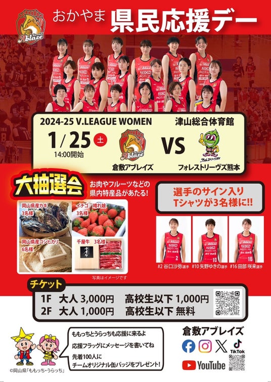 [倉敷アブレイズ](本社:岡山県倉敷市 代表取締役:渡邉大輔)は、「1月25日・26日のホームゲーム」を開催いたします。このイベントは、「地域とスポーツの力をつなぐ」をテーマに、スポーツファンや地域住民を対象にしたものです。私たちは、このイベントを通じて、新たなコミュニティの形成と地域交流の促進を目指しています。