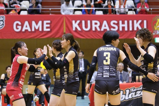 [株式会社アブレイズ]倉敷アブレイズは岡山県倉敷市に拠点を置く女子バレーボールチームです。アブレイズは「燃える」「情熱」という意味で、エンブレムは狐がモチーフとなっており、倉敷から情熱をもって、全国へ化けていきたいという意味です。