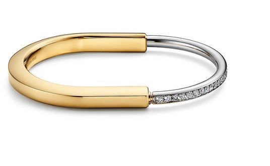 Tiffany Lock bangle in yellow and white gold with half pave diamonds