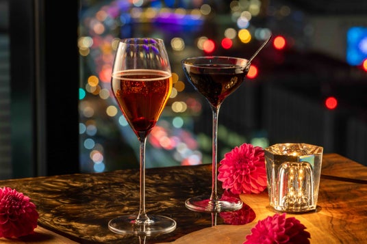 恋人たちのシーズンに乾杯を。神秘的なカクテル「ローズ」は、オリーブオイルウォッカとバブルにフローラルな香りがはじける一杯。「スカーレット・セレナーデ」は、コニャックとチェリー、コーヒーリキュールが織りなす艶やかなブーケのようなカクテルです。