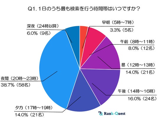 次いで多いのは「午後(14時~16時)」の16%となっており、比較的余裕のある午後の時間帯に検索を行う人が一定数存在するようです。