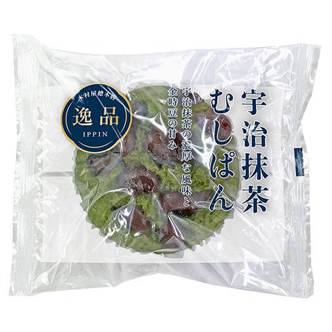 抹茶の濃厚な風味のむしぱん生地に金時豆をトッピングして蒸し上げました。宇治抹茶特有のほろ苦さに金時豆の甘さを合わせた、風味豊かなむしぱんです。(北海道産金時豆使用)
