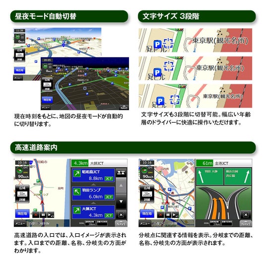 昼間にナビ画面が見えにくいとのユーザーの感想から大幅改良しました。