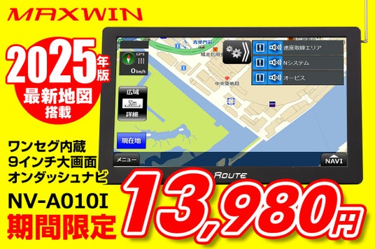 カー用品メーカーMAXWINの2025年版最新ポータブルナビ9インチ『NV-A010I』がAmazonで数量限定特別価格にて販売を開始しました。