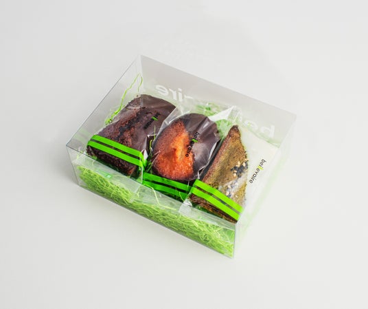 当店人気の発酵バターを使用した焼き菓子 フィナンシェ、フィナンシェショコラ、フィナンシェ・テ・ヴェール(抹茶)それぞれにコーティングを施した、全3種が入ったアソートBOX。