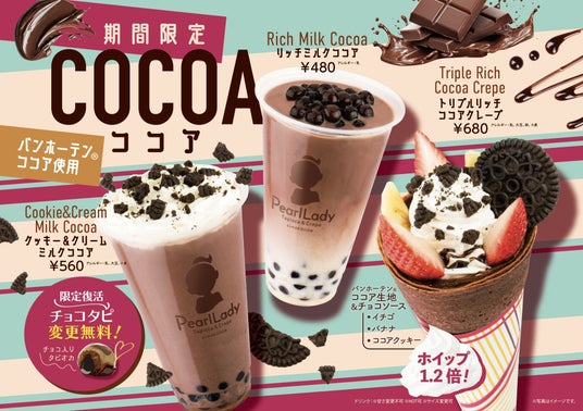 昨年よりもさらに濃厚になったリッチミルクココアに、パールレディ初のココア生地を使用したトリプルリッチココアクレープでリッチなご褒美タイムに。