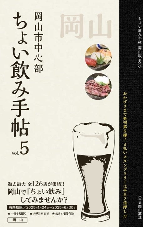 岡山市街地の中心に位置する杜の街グレース(岡山県岡山市北区下石井|https://www.morinomachi-grace.jp/、運営管理:両備ホールディングス株式会社)の店舗が参加する「ちょい飲み手帖 岡山版vol.5」(岡山放送株式会社発行)が、2025年1月24日(金)に発売開始となります。