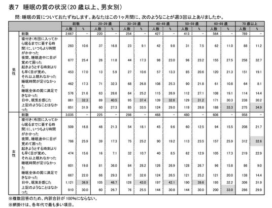 「睡眠負債大国」「世界で最も寝ていない国」と言われている日本。令和元年「国民健康・栄養調査」(厚生労働省)によると、男性の37.5%、女性の40.6%の睡眠時間は6時間未満です。加えて「睡眠全体の質に満足できなかった」人の割合は男性 21.6%、女性22.0%。「日中に眠気を感じた」人は男性32.3%、女性36.9%と、睡眠に課題を抱えている方が多いことがわかります。