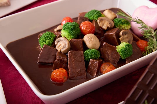 カカオとチョコレートで風味とコクをプラスした「カカオ風味の赤ワインソースで煮込んだ牛バラ肉」
