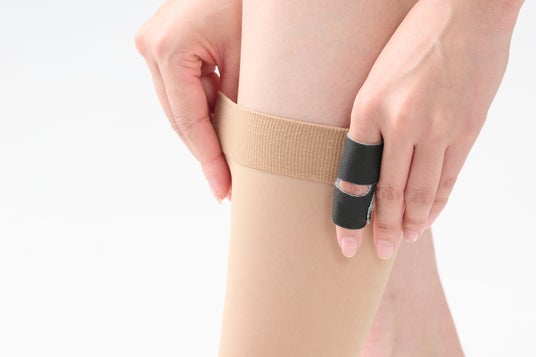 素材同士がひっつく特殊な素材を採用。面ファスナーを使用していないため、ストッキングなどの衣服に引っ掛かる可能性も少ないです。また、素材も約0.5mmと薄いのでかさばりにくいです。